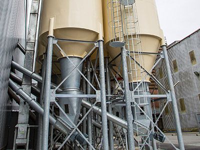 - Para silos de más de 2,5 metros de diámetro, y un ángulo de 45°.